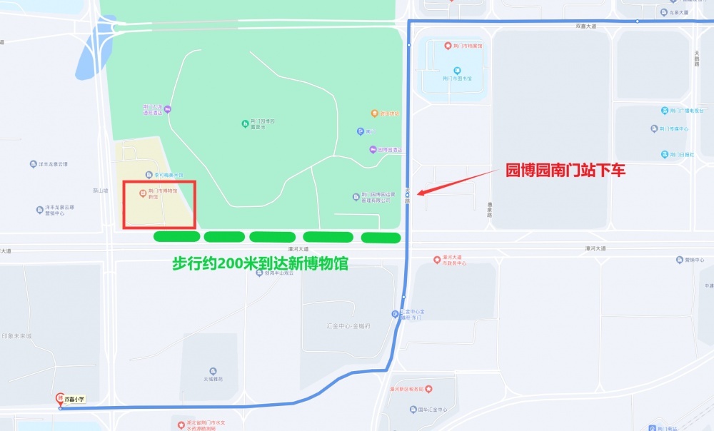 乘坐21路公交車(龍泉中學(xué)—漳河旅游碼頭)到漳河大道市博物館公交站點下車;21路線運營時間5:50-18:20,班次間隔20-25分鐘。