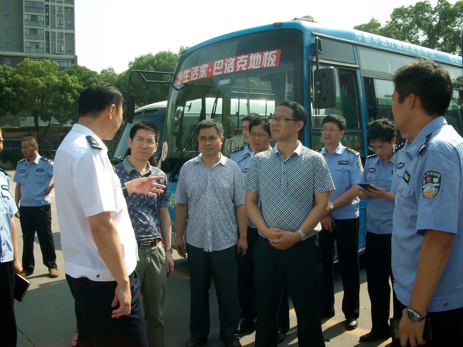 7月21日,副市長(zhǎng)、市公安局局長(zhǎng)朱高文帶領(lǐng)市公安局副局長(zhǎng)王文忠、治安支隊(duì)支隊(duì)長(zhǎng)吳斌鵬、交警支隊(duì)支隊(duì)長(zhǎng)陽勇一行深入公交公司、公交站臺(tái),檢查督導(dǎo)集團(tuán)公司公交安全工作。