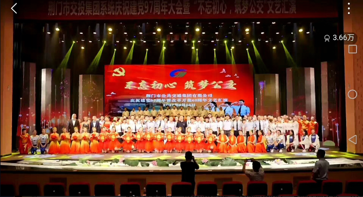 6月26日,市公共交通集團(tuán)有限公司在荊門劇院舉行慶祝建黨97周年表彰大會(huì)暨“不忘初心,筑夢公交”文藝演出,來自11個(gè)基層單位員工獻(xiàn)出了一場炫目多彩的紅色文化視聽盛宴。